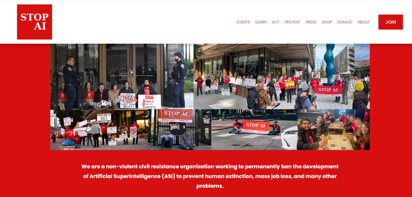“Yapay Zekayı Durdurun” hareketi, yapay zekâ teknolojisinin insanlık için varoluşsal bir tehdit oluşturabileceğini savunan ve bu nedenle geliştirilmesini durdurmayı amaçlayan bir sivil direniş hareketidir. Grup kendisini “şiddetsiz sivil direniş örgütü” olarak tanımlıyor. Hedefleri arasında özellikle “insanüstü yapay zekâ” olarak adlandırılan, insan zekâsını aşan sistemlerin kalıcı olarak yasaklanması bulunuyor. Bu düşünceye göre yapay zekânın kontrolsüz biçimde ilerlemesi, insanlığın geleceğini tehlikeye atabilir.